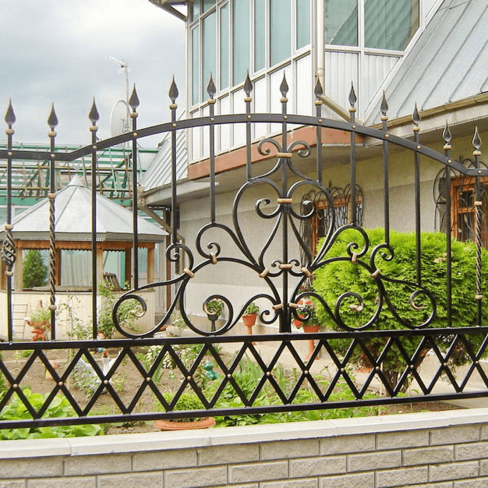 Кованные заборы защитят любую собственность от непрошеных гостей. Высокая прочность и устойчивость к различным деформациям позволяет использовать ограду для серьезных сооружений. Сломать забор практически невозможно. Таким образом проникновение на частную территорию через поврежденную секцию исключается. Металлическое сооружение прослужит вам не одно десятилетие, так как выполнено из прочного, твердого, устойчивого и неподвластного коррозии материала.