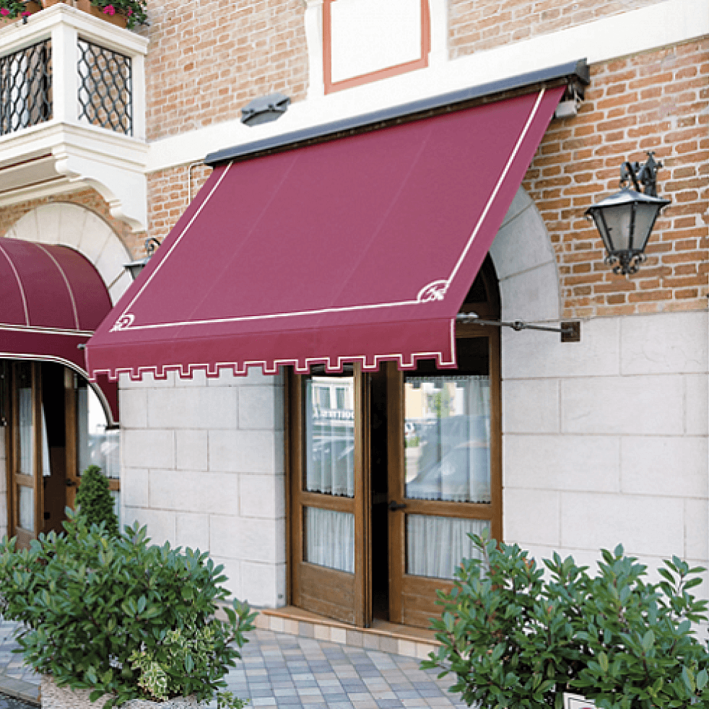 Применяется для защиты окон от солнца и входных групп от дождя. Большим спросом пользуется в кафе, ресторанах, магазинах, загородных домах для создания кроме защиты, некого легкого красивого европейского антуража в виде классики. При нанесении логотипа и текста на полотно маркизы или ламбрекен, служит дополнительной стильной вывеской.